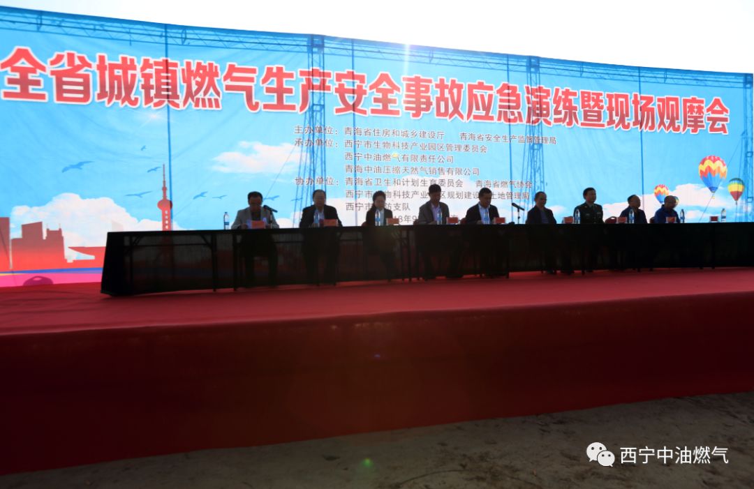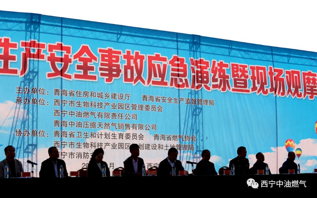 此次演练暨观摩会,由青海省住建厅、省安监局主办,西宁生物科技产业园区管委会、西宁中油燃气有限责任公司、青海中油压缩天然气销售有限公司承办,青海省卫计委、省燃气协会、西宁生物科技产业园区规划和土地管理局、西宁市消防支队协办。